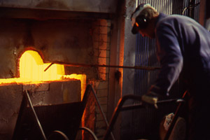 Göran Wärff with master craftsmen at Kosta Glassworks